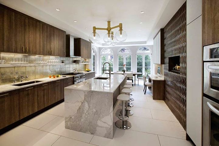 This is a lovely galley kitchen we recently finished for a client. As you can see, this is an incredible use of materials by our designer that brings the whole thing together. We can do the same for you. Visit our showroom today for a complimentary estimate.